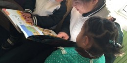 冬日里温暖的阳光,从窗外懒洋洋地洒进来,淡金色的光线一束束打在空中,照射在小一班教室的佩琪书吧上,照射在伟才宝宝们认真阅读的身子上。